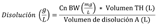 Cn BW: Concentración de BiOWiSH® Odor recomendada (mg/L). Volumen TH: Volumen del tanque de homogeneización (L). Volumen de disolución A: Volumen de disolución A deseado (L).