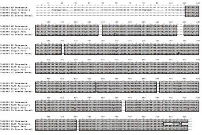 Sequencing of cloned cDNA was achieved at the Sequencing Service of the National Center for Microbiology, Instituto de Salud Carlos III, Madrid, Spain, using 373A system, Model 377, Applied Biosystem, following the protocol BigDye Terminator Cycle Sequencing Ready Reaction Kit (ABI-PRISM, PE Biosystems). The cDNA sequence obtained was compared with the sequences included in the databases (nucleic acid and proteins) (GenBank, EMBL) and analyzed by bioinformatics programs. Multiple alignments were done using the Clustal W. The alignment was revised using BioEdit Sequence Alignment Editor, version 7.0.5.3 (Hall, 2013). Nucleotide and amino acid sequences were analyzed using the EditSeq program of DNAstar (Lasergene®, Madison, USA). Identity and similarities were looked for in the databases (protein and nucleic acid) (EMBL, GenBank) by BLAST (Boratyn et al.; 2019). Other analyses were performed using CDD-Search of the NCBI (National Center for Biotechnology Information) (Lu et al.; 2020), Interpro of the EBI (European Bioinformatics Institute) (Mitchell et al.; 2019), Motif scan, and ExPASy (Expert Protein Analysis System) of the SIB (Swiss Institute of Bioinformatics) (Proteomics Server) (Artimo et al.; 2012). Epitopes B prediction was performed using the Protean program from DNAstar (Lasergene®, Madison, USA). In addition, the program BcePred (Prediction of continuous B-cell epitope in antigenic sequences using physico-chemical properties) (Saha et al.; 2005) was employed.