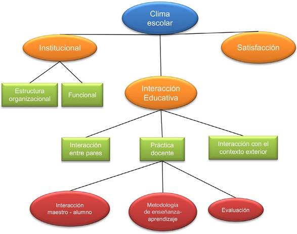 Al respecto, el clima escolar es considerado como un aspecto enmarcado dentro de la cultura imperante en las instituciones educativas y que puede ser observado a través de las interacciones, resultados y comportamientos que ocurren día a día dentro del centro educativo; es decir, la cultura de la institución crea el clima escolar, que es percibido de manera grupal y que se relaciona directamente con la forma en que las personas se sienten con respecto a su estancia en dicha institución (Cohen et al., 2009; Roby, 2011).
