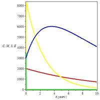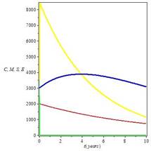 Figure 3 is generated by using parameters space for MTH 222 in Table 4, together with C (t) = 2000, M (t) = 5000, S (t) = 3500, E (t) = 3000 and 𝛼 = 0.001. From Figure 3, it is shown that there is no significant increase in the population of qualified graduates that are being produced over time compared to Figure 2. Figure 3 corresponds to the falling parts of Figure 2, and it is instigated by the compromise of academic standards. Based on the results of the analysis, the failure rates in the memo in Table 2 cannot be said to be too high, and the lecturers should not be coerced to adjust the scores in the interest of the society; rather, the students who failed should be supported through counseling to attain academic excellence.