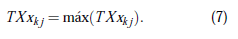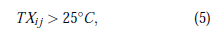 donde TXi j se refiere a la temperatura máxima registrada en el día i, y el año j.