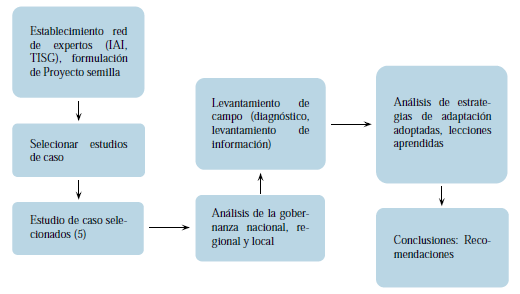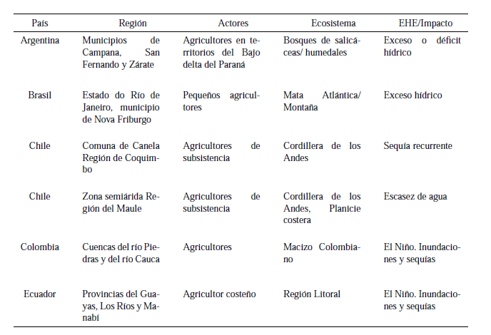 La selección de estudios de caso fue realizada considerando dos criterios: el trabajo de los investigadores involucrados en el proyecto y la ocurrencia de fenómenos meteorológicos extremos de grandes proporciones que afectaron al sector agrícola de cada país de América Latina que participan en el proyecto.