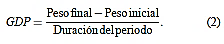 Para la determinación del peso, incremento de peso y ganancia diaria de peso (GDP), se realizó el pesaje de cada unidad experimental mediante el uso de una cinta zoométrica, a los 0, 7, 14 y 21 días, a partir de la aplicación de los productos. La ganancia diaria de peso (GDP) se midió en gramos, aplicando la siguiente fórmula: