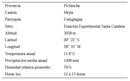 La ubicación geográfica y las características climáticas en donde se realizó la presente investigación se presentan en la Tabla 1.