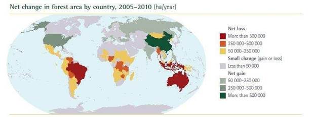 El factor que más afecta a este grupo biológico es indudablemente la deforestación y la pérdida de cobertura vegetal natural. La primera muestra cifras alarmantes a nivel mundial: el 80% de la cobertura original de bosques nativos ha sido transformada a terrenos para agricultura. Por ejemplo, la Amazonía, con una superficie original aproximada de 5 500 000 km2, ha perdido el 15% de su superficie boscosa en los últimos 50 años por deforestación; solo Brasil pierde más de 500 000 ha de este bosque por año (Figura 4) que terminan siendo dedicadas a actividades ganaderas y agrícolas (World Preservation Foundation, 2010).