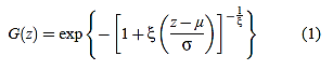 Let X1, . . . ,Xn be a sequence of independent randomvariables, and let Mn = max{X1, . . . ,Xn} the maximum(or minimum) values measured on a regular timeline, so Mn represents the extreme values of the process in n time units of observation. For this data, and using a linear renormalization, the distribution of the set of Mn is given by the Generalized Extreme Value (GEV), which has the form: