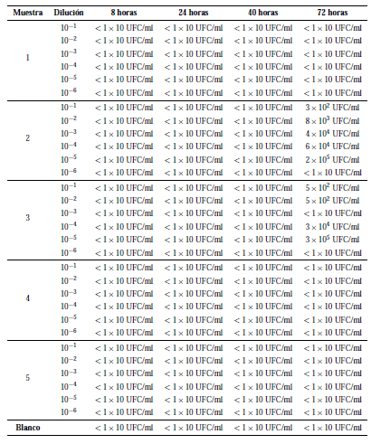 Hasta las 48 horas no se observó ningún cambio en los medios de cultivo, lo que indica que a las 48 horas no existen UFC visibles.