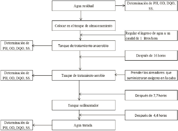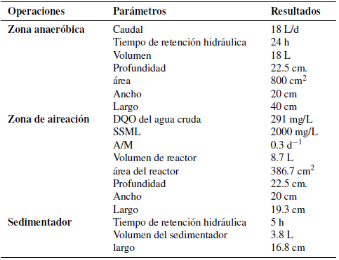 Las determinaciones de pH, sólidos suspendidos SS y Oxígeno disuelto OD se realizaron diariamente y DQO se determinó dos veces por semana, los análisis se realizaron por duplicado y de acuerdo a la metodología descrita por el Standard Methods of Water and Wastewater [APHA, AWWA, WEF, 2005].