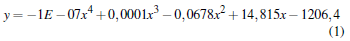 En base a una regresión polinómica de cuarto grado, se obtiene la siguiente ecuación: