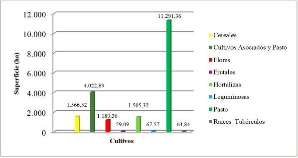 En el subsistema agrícola, los productores que destinan parte de la superficie para la producción de alimentos para el consumo familiar y venta del excedente cultivan: papa, fréjol, maíz, cebolla paiteña, col, lechuga, zanahoria, rábano, tomate, hierbas medicinales, arveja, avena, uvilla, cebada, cebolla, chocho, frutilla, habas y quinua. Otros están dedicados al cultivo de flores y la gran mayoría al cultivo de pasto para la producción de leche (Gráfico 1).