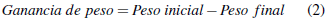 El peso de los animales fue registrado a las 10 am cada 8 días utilizando una báscula, para determinar la ganancia de peso de los diferentes tratamientos se estableció por la diferencia de pesos;