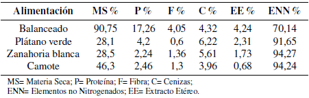 Al inicio de la investigación se realizó un análisis bromatológico de los residuos de cosecha utilizados y los balanceados utilizados (Tabla 2).