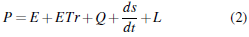 Donde P es la lámina de precipitación en mm, E representa la cantidad de agua interceptada por la vegetación y evaporada directamente desde el dosel en mm, que para las zonas de páramo es relativamente baja (Tobón y Gil Morales, 2007) y según (Buytaert, Célleri, De Bièvre, Cisneros, Wyseure, Deckers y Hofstede, 2006) este término puede ser excluido en la ecuación. ETr es la evapotranspiración real (mm), Q representa el caudal de la cuenca en mm, L se refiere a la percolación profunda en mm y ds/dt que describe el cambio en el contenido de humedad del suelo en mm, y según Torres (2016) para Jatunsacha es igual o cercano a cero, afirmación corroborada por Buytaert, Célleri, De Bièvre, Cisneros, Wyseure, Deckers y Hofstede (2006) en un estudio realizado en una microcuenca de páramo al sur del Ecuador.
