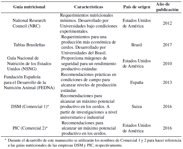 En la actualidad existen diversas fuentes de información donde se pueden encontrar los requerimientos nutricio- nales para la especie porcina, unas de carácter académico-experimental y otras creadas por la industria con el fin de alcanzar el máximo potencial productivo. En el primer grupo se encuentra la guía nutricional de la National Research Council (NRC, 2012), las Tablas brasileñas para aves y cerdos (Rostagno y col., 2017), la Guía Nacional de Nutrición de los Estados Unidos (NSNG) (U.S. Pork Center of Excellence, 2010), y las recomendaciones de la Fundación Española para el Desarrollo de la Nutrición Animal (FEDNA) (FEDNA, 2013). En el segundo grupo destaca la Guía de suplementación vitamínica 2016 de DSM para la nutrición animal (DSM, 2016) y el Manual de Especificación de Nutrientes de PIC (PIC, 2016). El objetivo de este manuscrito es presentar de manera resumida las recomendaciones nutricionales de vitamina D, calcio y fósforo realizada por diferentes fuentes de reconocido prestigio mundial, proporcionando un contenido valioso para el nutricionista dedicado a la alimentación y formulación de dietas para cerdos en sus diferentes estados fisiológicos.