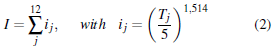 Donde Tj es la temperatura promedio mensual. De la ecuación (1) el exponente a(I) se define como: