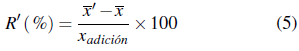 Para el análisis de los datos obtenidos de las mediciones de blancos digestados y blancos adicionados, se usó la siguiente fórmula Eurolab España y Morillas (2016):