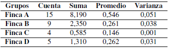 Después de realizar el análisis de varianza (Tabla 7) al ser p<0,05 se acepta la hipótesis alternativa, es decir, la concentración de Cd en las almendras de cacao de al menos una finca difiere de las demás.