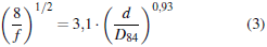 El modelo de roca de Bathurst (2002) se obtuvo con el análisis de veintisiete conjuntos de datos. En ese artículo, el autor se centra en los efectos de las variaciones entre áreas y en la resistencia. La Ecuación 3 se utiliza para las pendientes del cauce superiores a 0,8%, donde d es el promedio de profundidad de agua [m].
