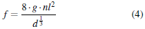 La razón del uso de D84 es que éste representa una vista 3-D del material del lecho del río. Sin embargo, al existir piletas o cascadas, esta altura de rugosidad parece no ser la apropiada (Lee y Ferguson,2002; Maxwell y Papanicolaou, 2001; Aberle y Smart, 2003). Sin embargo, existen otros estudios en donde se utilizó el D84 con éxito para estas morfologías (Comiti y col., 2007). Si en un área se utiliza uno de los modelos de roca, el valor de f se calculará y transformará en una rugosidad unitaria usando la Ecuación 4. Donde g es la aceleración gravitacional[m s-1], nl rugosidad unitaria [s m-1/3], y d es la profundidad del agua [m]. Esta ecuación es el componente rugoso-turbulento de Colebrook-White.