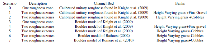 Esta investigación representa una extensión del estudio de caso del río Tomebamba, presentado por Knight y col. (2009). Se consideraron nuevos escenarios con diferentes modelos de roca y/o zonas de rugosidad. La previsibilidad se cuantifica a través de diferentes parámetros para verificar diferentes aspectos de los errores. Los datos utilizados para la validación se tomaron de una curva de descarga que se comparó con el rendimiento del modelo.
