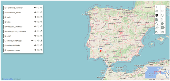 El mapa web de Mappia Publisher ofrece herramientas de visualización similares a las de otros mapas web (Figura 8). Además, proporciona: i) herramientas de ayuda al usuario; ii) una herramienta para comprobar la información de una entidad; iii) una herramienta para visualizar metadatos; IV) la función de habilitar y deshabilitar mensajes de advertencia; v) la función para ocultar ventanas de archivo de forma; y vi) la oportunidad de actualizar nuevas capas generadas en QGIS.