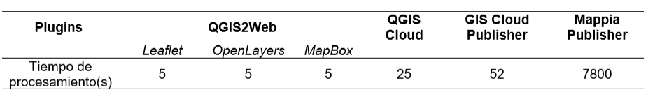 En la Tabla 6 presenta el tiempo de procesamiento de los cuatro plugins analizados.