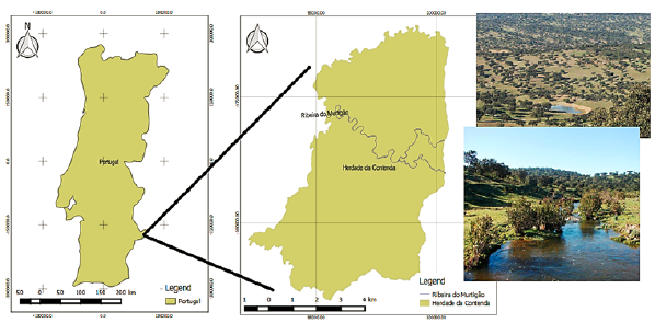 Para comparar los cuatro plugins, se consideró un estudio de caso en Alentejo, Portugal, en la propiedad Herdade da Contenda (HC) (Figura 1). Se seleccionó el área de estudio de HC debido a la información geográfica disponible, datos vectoriales y ráster, que pueden usarse como información en los mapas web. HC es una zona protegida que está ubicada en el municipio de Moura, distrito de Beja, Portugal (Duarte et al., 2016).