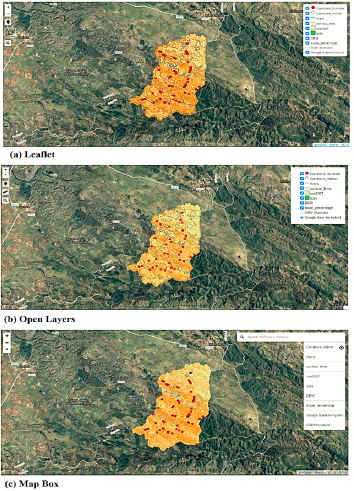 Se crearon 3 mapas web basados en las bibliotecas Leaflet, OpenLayers y Mapbox (Figura 3) usando el plugin QGIS2Web,