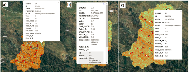 En la figura 3 se puede observar que las GUI de los tres mapas web son muy similares, y están compuestas por las mismas herramientas, pero con diferentes widgets de la interfaz. Las ventanas emergentes de cada mapa web también tienen interfaces diferentes (Figura 4).