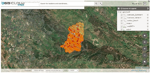 El QGIS cloud es una gran plataforma de GIS web para publicar mapas, datos y servicios en Internet. Este plugin no requiere un servidor o una infraestructura (QGIS Cloud, 2020), y proporciona una base de datos PostgreSQL 9 ampliada con PostGIS 2. El usuario puede modificar el almacenamiento de datos considerando cualquier herramienta compatible como pgAdmin3, el navegador QGIS o el QGIS DB-Manager. También es posible compartir mapas y datos en la página web compatible con OGC y mostrar mapas como WMS o descargar datos como WFS. Los usuarios pueden editar los datos directamente en la página web o utilizar el GIS web de QGIS Cloud y el mobile client integrados en el QGIS cloud con sub-cadenas bien formadas (WFS-T). También existe una función para proporcionar mapas para imprimir de alta calidad como WMS. Los datos también se pueden almacenar en la nube de PostgreSQL. El acceso a los datos está protegido mediante una contraseña y es posible acceder a ellos a través de Secure Shell (SSH). QGIS Cloud ofrece dos planes de suscripción: QGIS Cloud Free, donde se puede acceder libremente a todos los mapas publicados en Internet hasta 50 MB; y QGIS Cloud Pro, donde el acceso a los mapas es limitado.
