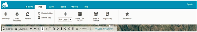 El mapa web de GIS Cloud Publisher ofrece funciones similares a las de otros mapas web, sin embargo, proporciona menús y varias herramientas de edición (Figura 6).