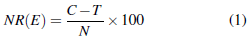 Donde NR representa a la evasión (porcentaje)C representa al total de E. fetida en el suelo control, T representa al total de E. fetida en el suelo impactado, y N representa al total de E. fetida al iniciar el ensayo (Alves y col., 2013).