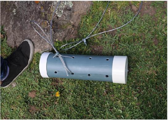 Donde Ms(t) es la masa del analito acumulada en el muestreador luego del tiempo de exposición. Rs es la constante de proporcionalidad, Cw es la concentración de analito en el ambiente acuoso, y t corresponde al tiempo de exposición. Los dispositivos usados son los distribuidos por la empresa “ESTLab” ubicada en St. Joseph, Missouri, Estados Unidos. Los dispositivos POCIS son del modelo “Oasis HLB rectangular” y los dispositivos SPMD son del modelo “99% purity 15cm with loops”. Ambas membranas fueron sujetadas por una estructura de metal y colocadas dentro de una carcasa plástica de tubo PVC (Figura 3).
