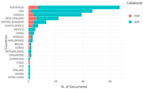 Australia ocupa el primer lugar con más de 60 documentos científicos, seguido de Estados Unidos; sin embargo, es de resaltar que entre los 20 países más influyentes hay tres sudamericanos, México, puesto siete, Brasil en el once (11) y Chile en el puesto dieciséis (16).