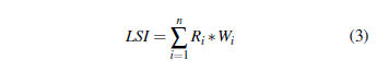 es el valor máximo propio y se calcula a partir de la matriz y n es el orden de la matriz. Según Saaty (1990), la relación de coherencia debe ser menor o igual a 10% o una imprecisión inferior a 10%. El principio consiste en comparar el juicio con la comparación aleatoria de los elementos. Finalmente, las ponderaciones integraron las distintas clases causales en un único índice de susceptibilidad a los deslizamientos, LSI, utilizando la Ec (3) (Saaty, 1990).