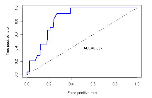 Se utilizó la librería “ROCR” del paquete “ROCR” en el software RStudio para evaluar la precisión de nuestro modelo cartográfico de susceptibilidad a los deslizamientos. El análisis de la curva ROC reveló un AUC de 0,837 lo que indica una precisión de predicción de 83,7% (Figura 6). Esta métrica es una medida confiable para evaluar el rendimiento del modelo en la predicción de los deslizamientos.