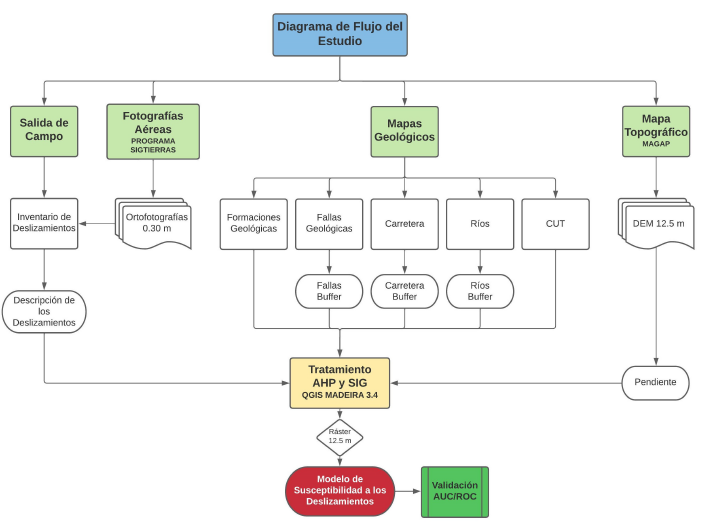 Orejuela, I. y T. Toulkeridis (2020). «Evaluation of the susceptibility to landslides through diffuse logic and analytical hierarchy process (AHP) between Macas and Riobamba in Central Ecuador». En: 2020 Seventh International Conference on eDemocracy y eGovernment (ICEDEG), págs. 201-207.