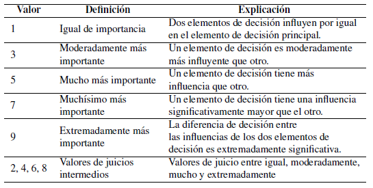 Saaty, Thomas L. (1977). «A scaling method for priorities in hierarchical structures». En: Journal of mathematical psychology 15.3, 234-281. Online: https://n9.cl/zvwbr.