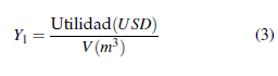 Es la relación entre la utilidad monetaria producida por el cultivo y el volumen de agua utilizada, se expresa en USD. m−3 de acuerdo con Ríos et al. (2016).