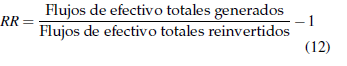 Para este indicador se considerará el Rendimiento de Reinversión (RR) según la ecuación 12.
