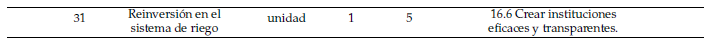 Estos indicadores ofrecen una base integral para evaluar la sostenibilidad de los sistemas de riego en función de sus contribuciones a los ODS y los Principios CSA-IRA, permitiendo diseñar estrategias orientadas a su mejora continua. A continuación, se presenta la descripción detallada de los 31 indicadores definidos. Esta sección incluye la conceptualización, el método de cálculo y la unidad de medida, lo que permite su aplicación práctica en la evaluación de la sostenibilidad de los sistemas de riego comunitarios.