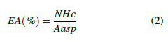 Es la relación existente entre las necesidades hídricas del cultivo y el agua aplicada por el emisor (aspersor o goteo) en la UPA, expresada en porcentaje en la ecuación 2. Siendo: EA = eficiencia de aplicación a nivel de UPA; NHc = necesidades hídricas del cultivo; Aasp = agua aplicada por el emisor en la UPA (Playan, 1994).
