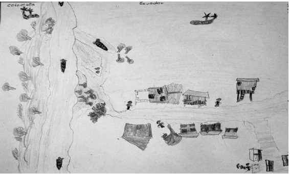 En Colombia, o sea al otro lado sabe estar la guerrilla, por eso algunos helicópteros también de Ecuador son de color verde (…) allá se pelea el ejército con la guerrilla (Mariela, 12 años, relato de vida, 2015).