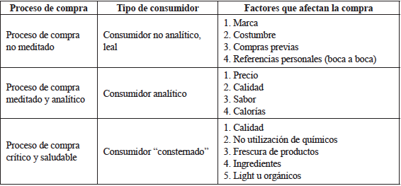 Los resultados obtenidos en cuanto al proceso de compra y los factores que lo afectan se resumen en la siguiente tabla: