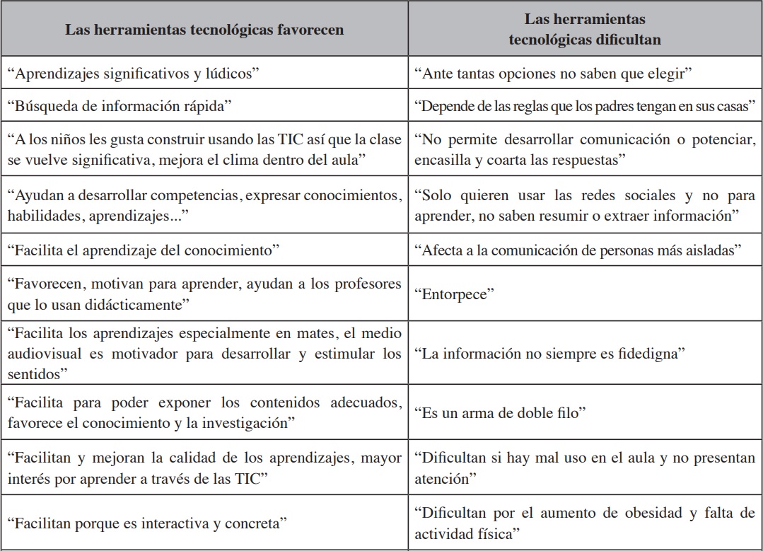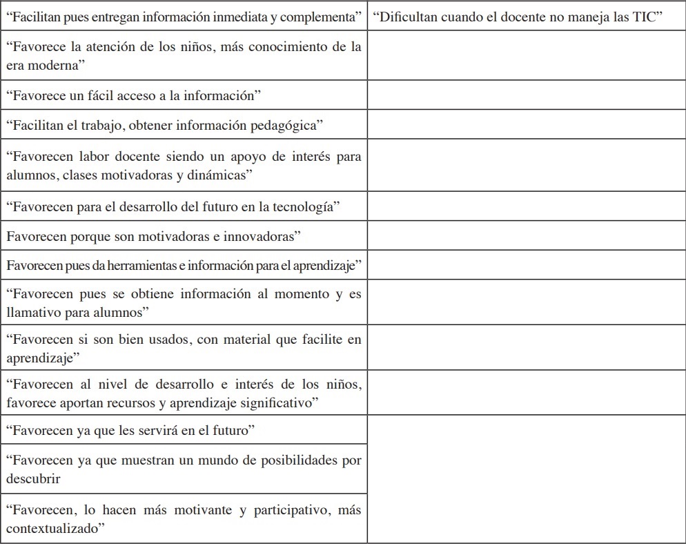 A este respecto, el profesorado describe una serie de ventajas y limitaciones sobre el uso de las TIC en el aula (Tabla 1).