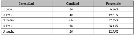 La muestra del presente estudio, confirmó que la intensidad del estrés académico es del 73.53%, esta puntuación señala que puede presentarse una repercusión en el bienestar y en la salud de los sujetos (Álvarez, Aguilar, & Segura, 2011).