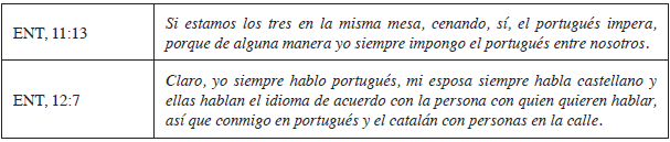 En el caso de una sola familia, el portugués no es hablado en casa, dado que el familiar brasileño relata haber perdido mucho del idioma portugués y que actualmente habla portuñol, una interlengua entre el portugués y el castellano: