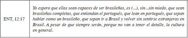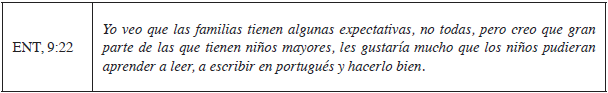 Con respecto a las expectativas relacionadas con el trabajo de la Asociación de Padres de Brasileños en Cataluña (APBC), la totalidad de los familiares de los participantes relata que su propósito en llevar los hijos a las clases de portugués de la APBC es ofrecer otro espacio en el cual se hablara y, especialmente, se valorizara la lengua y la cultura de Brasil.