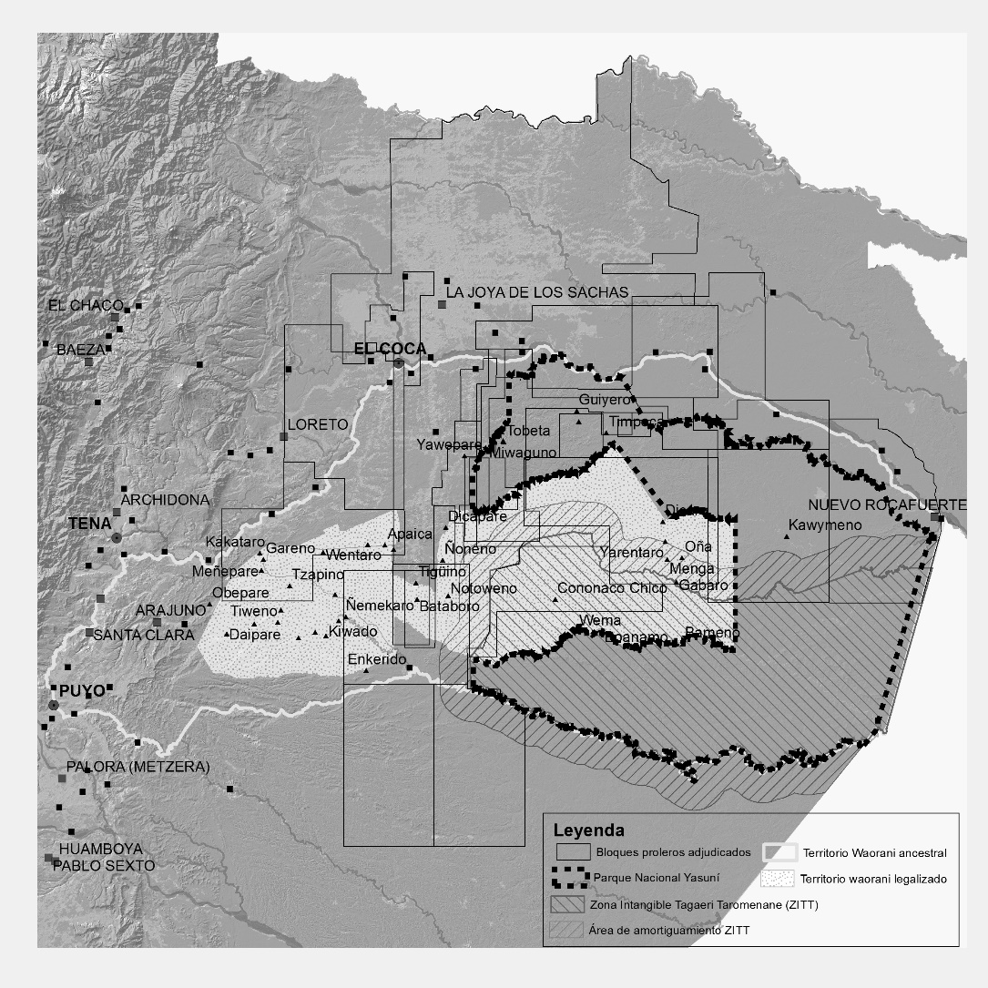 Bayón, M., Ramírez A., Moreano, M., Gutiérrez B., & Zaragocin S. (2017). Límites territoriales a la explotación petrolera en Ishpingo y Tambococha. Recuperado de: https://bit.ly/2OzosIz (2018-05-31).