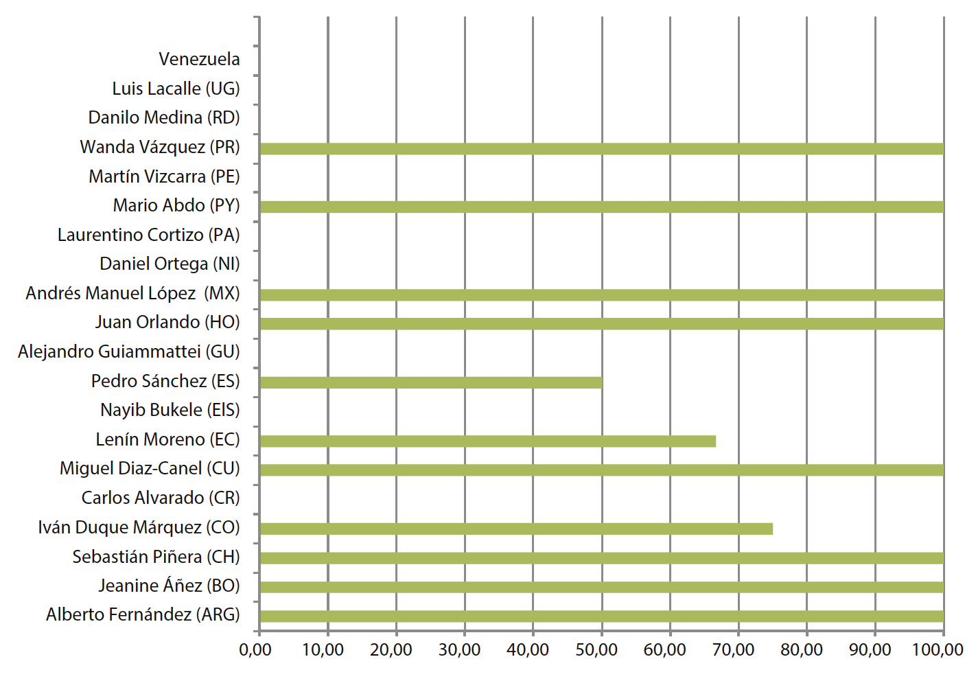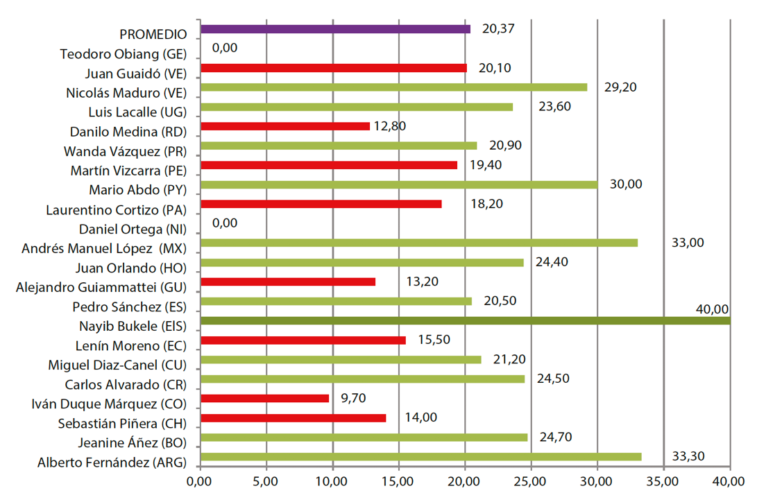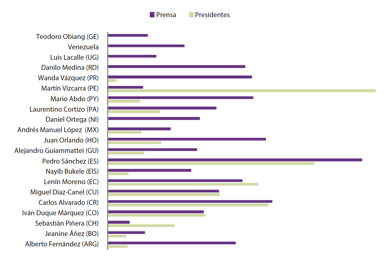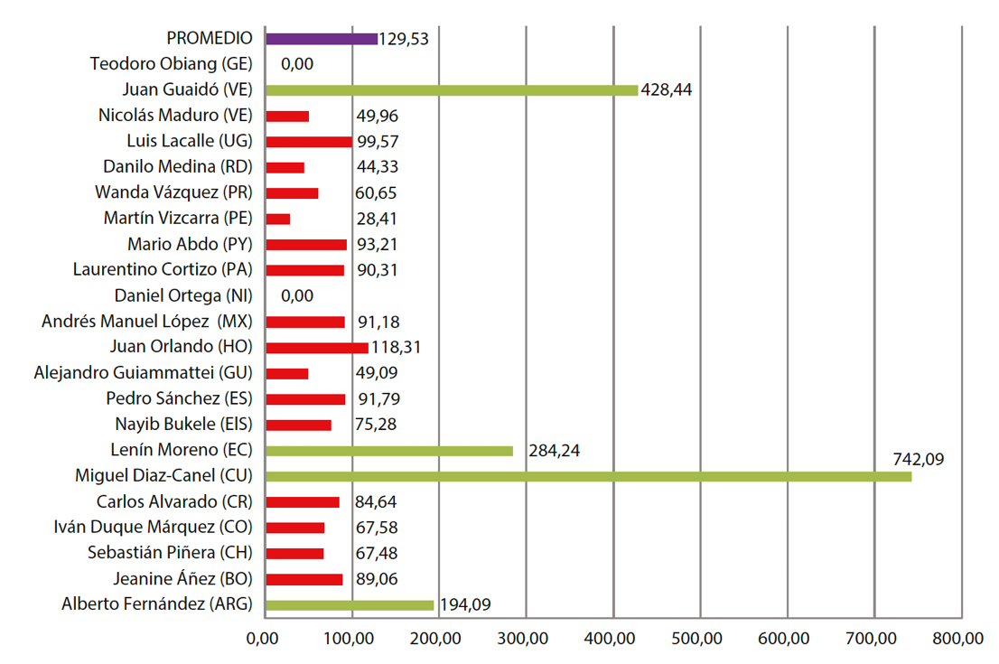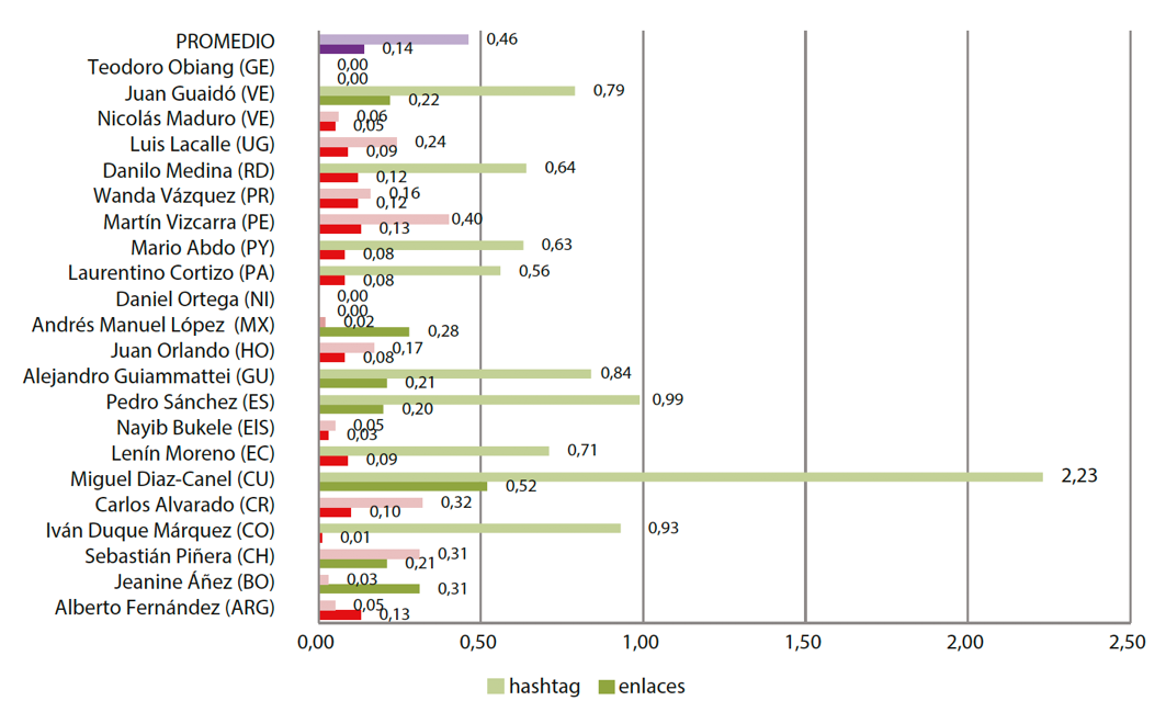Como se colige, tan solo dos presidentes presentaron datos por encima de la prensa de su país y de la media de todos los perfiles estudiados, y cuatro de ellos tenían un buen equilibrio con la Agenda Building. Catorce cuentas presentaron datos por debajo de la Agenda Building y cuatro de ellas ni siquiera tenían datos relacionados con esta.